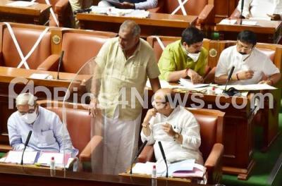 Photo Caption : CM Basavaraj Bommai with Ministers Govind M Karjol, Madhuswamy during Assembly Session at Vidhana Soudha , in Bengaluru on Tuesday 14th September 2021
