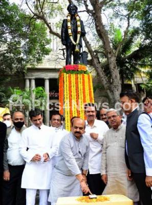 CM Basavaraj Bommai with Ministers Govind Karjola, CC Patil, MLA Rizwan Arshad and others during inauguration of Sir M Visvesvaraya square at KR Circle on the occasion of National Engineers Day, in Bengaluru on Wednesday 15th September 2021