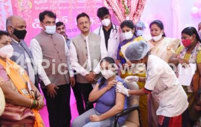 Photo Caption : Minister Ashwath Narayan with Gaurav Gupta, BBMP Commissioner and others inaugurated the COVID-19 vaccination drive at Malleshwaram, in Bengaluru on Friday 17th September 2021