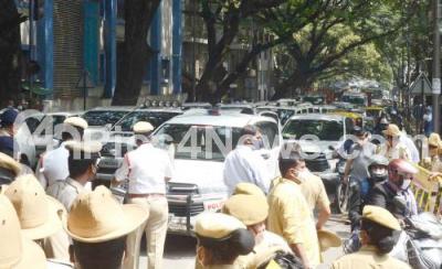 Photo Caption : Traffic Jam at Queens Road during Congress Leaders protest against hike in fuel rate, in Bengaluru on Monday 20th September 2021