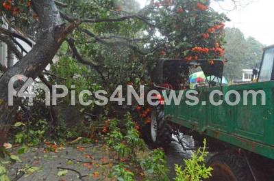 Photo Caption : A huge tree uprooted on a tractor at Raj Bhavan road, due to heavy rains, in Bengaluru on Monday 20th September 2021