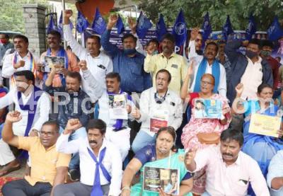 Photo Caption : Members of Dalita Sangharsha Samiti Federation protesting to fulfill their various demands, in Bengaluru on Wednesday 22nd September 2021