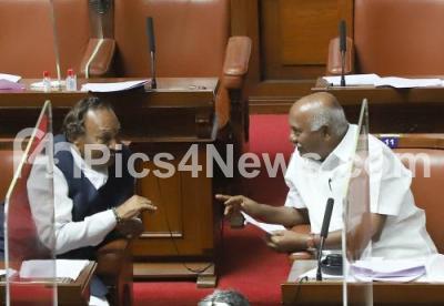 Photo Caption : Minister Eshwarappa and MLC Vishwanath during Council Session at Vidhana Soudha, in Bengaluru on Friday 24th September 2021