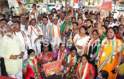 Event Description : Members of Congress Backward Classes Division protesting in support of Bharath Bund on 27 September , in Bengaluru on Saturday 25th September 2021
