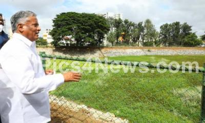 Event Description : Minister V Somanna inspected the Nayandahalli Lake, in Bengaluru on Sunday 26th September 2021