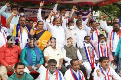 Photo Caption : Members of Dr. Ambedkar People Party protesting to fulfill their various demands, in Bengaluru on Tuesday 28th September 2021