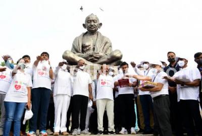 Chief Minister Basavaraj Bommai with Minister Sudhakar, MP PC Mohan and others take part in walkathon on the occasion of World Heart Day , in Bengaluru on Wednesday 29th September 2021