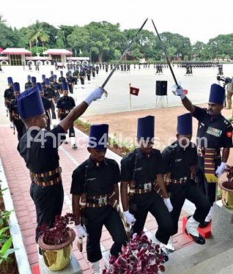 Photo Caption : MEG recruit platoons at the rehearsal of passing out parade of MEG Sappers during the media visit to Madras Engineers Group (MEG) and Centre on the day ahead of the celebration of 241st MEG Day, in Bengaluru on Wednesday 29th September 2021