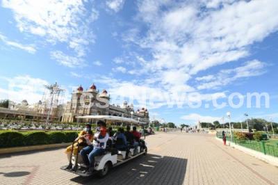 Photo Caption : People visiting Mysore Palace during the Mysuru Dasara Festival, in Mysuru on Sunday 3rd October 2021