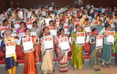 Photo Caption : Members of Karnataka Rajya Anganwadi Workers Association during a seminar on Effect on Anganwadi from new Education Policy at Scouts and Guides Auditorium, in Bengaluru on Sunday 3rd October 2021