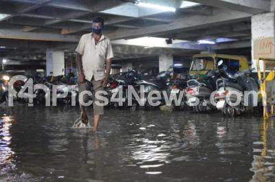 Photo Caption : Rain water logged in the basement of KR Market, after last night heavy rainfall, in Bengaluru on Monday 4th October 2021
