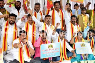 Photo Caption : Members of Karunada Vijayasene staged a protest for Mekedatu Project issue, in Bengaluru on Tuesday 5th October 2021
