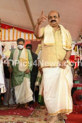 Photo Caption : CM Basavaraj Bommai seen during the inauguration of the Dasara 2021 festival at Chamundi Hills, in Mysuru on Thursday 7th October 2021