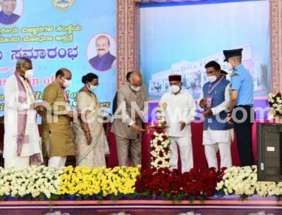 Photo Caption : President of India, Ram Nath Kovind with CM Basavaraj Bommai, Minister Dr Sudhakar and others inaugurated the 450-bed hospital of Chamarajanagar Institute of Medical Sciences, in Chamarajanagar on Thursday 7th October 2021