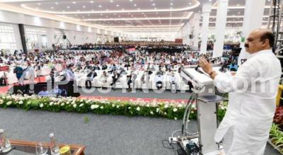 Photo Caption : Chief Minister of Karnataka Basavaraj Bommai addressing the delegates during the inauguration of "Entrepreneurship and Employment" program, in Bengaluru on Monday 11th October 2021