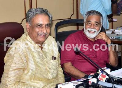 Photo Caption : Council Chairman Basavaraj Horatti and Minister BC Nagesh addressing a press conference at Vidhana Soudha, in Bengaluru on Monday 11th October 2021