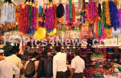 Photo Caption : Decorative items for Ayudha Pooja during Dasara Festival at KR Market, in Bengaluru on Tuesday 12th October 2021
