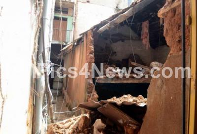 Photo Caption : Side wall and Mangalore-tile roof of the old single storey house collapsed at PVN Lane in Nagarathpet, in Bengaluru on Wednesday 13th October 2021