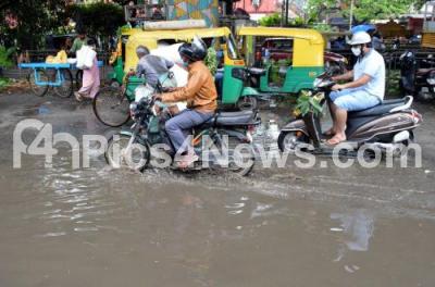 Photo Caption : Rain water logged roads in KR Market, as rains continue to lash Bengaluru City on Friday 15th October 2021