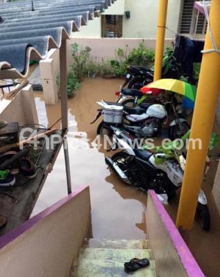 Photo Caption : Rain water logged in the basement of the house at BTS Layout in Bagalagunte as heavy rains lashed Bengaluru City on Friday 15th October 2021