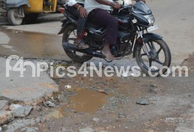 Photo Caption : Bad road condition at NR Road near KR Market has been causing inconvenience to the motorists, in Bengaluru on Monday 18th October 2021