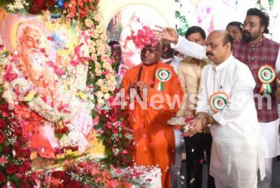 Photo Caption : CM Basavaraj Bommai with Minister Sriramulu, Prasannanda Puri Swamiji and others during Valmiki Jayanti celebrations at Vidhana Soudha, in Bengaluru on Wednesday 20th October 2021