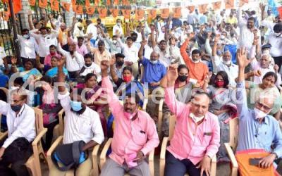Members of Karnataka Raste Sarige Majdoor Sangha Okkuta (Karnataka Road Transport Mazdoor Association) protesting to fulfill their various demands, in Bengaluru on Thursday 21st October 2021