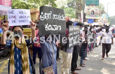 Event Description : Members of Stop Communal Goondagiri protesting against communal violence in Karnataka, in Bengaluru on Thursday 21st October 2021