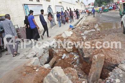 Photo Caption : Bad footpath condition and causing inconvenience to people on Shivaji Nagar, in Bengaluru on Monday 25th October 2021