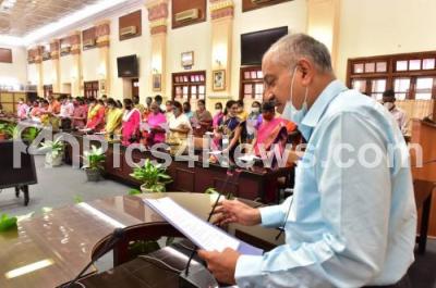 Event Description : Chief Secretary of Karnataka State Government, P Ravikumar with State Departments staff take a pledge to create awareness against corruption at Vidhana Soudha, in Bengaluru on Tuesday 26th October 2021