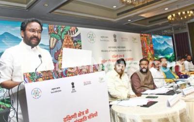 Event Description : Union Minister for Tourism, Culture G Kishan Reddy with Union Minister of State for Tourism Ajay Bhatt, Union Minister of State for Chemicals and Fertilisers, Bhagwant Khuba and others during the inauguration of Tourism and Culture conference of Southern region at a private hotel, in Bengaluru on Thursday 28th October 2021