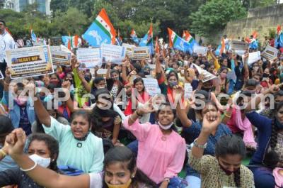Members of NSUI staged a protest against the against the National Education Policy (NEP) and demanding the Karnataka State Government to distribute free Bus Passes, laptops and tabs for poor students, in Bengaluru on Friday 29th October 2021