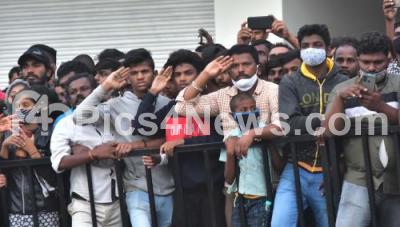 Fans of Actor Puneeth Rajkumar seen outside Kanteerava Studio as the last rites of Actor Puneeth Rajkumar with full state honours were performed at Kanteerava Studio, in the presence of family friends and fans, Puneeth Rajkumar passed away due to a fatal cardiac arrest on Friday morning, in Bengaluru on Sunday 31st October 2021
