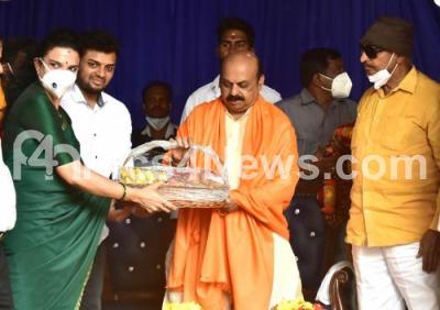 Photo Caption : CM Basavaraj Bommai with Vatal Nagaraj and others inaugurated the Kannada Rajyotsava procession at SBM Circle, in Bengaluru on Monday 1st November 2021