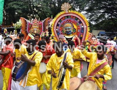 Cultural program during the Kannada Rajyotsava procession at SBM Circle, in Bengaluru on Monday 1st November 2021