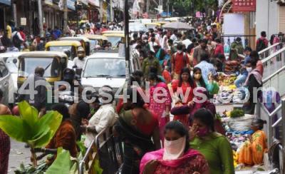 People shopping Diwali lanterns, Diya lamps and decorative items at a shop ahead of Diwali festival at Malleshwaram, in Bengaluru on Wednesday 3rd November 2021