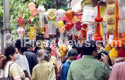 Photo Caption : People shopping Diwali Festival decorative items at Malleshwaram for the Deepavali festival, in Bengaluru on Thursday 4th November 2021