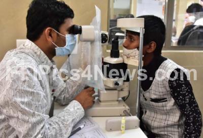 Photo Caption : A boy being treated at Minto Hospital, after suffering eye injury while bursting crackers while celebrating Diwali Festival, in Bengaluru on Saturday 6th November 2021