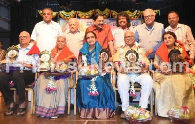 Photo Caption : Senior Poet HS Venkatesh Murthy presenting "Masti" awards at Bahartiya Vidya Bhavan to mark Jnanpith Award Masti Venkatesha Iyengar birth anniversary, also seen are H Dandappa, Masti Trust President Mavinakere Ranganath and others, in Bengaluru on Saturday 6th November 2021
