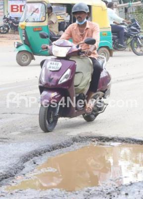 Photo Caption : Potholes have been causing lot of problems to the motorists and the people at Sonnenahalli, Vishweshwaraiah Layout, in Bengaluru on Saturday 6th November 2021