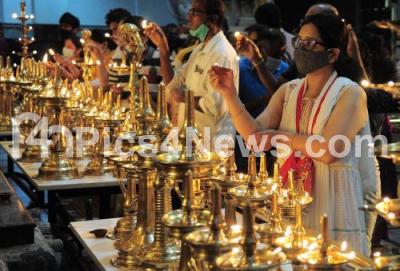 Photo Caption : Priests and devotees performing Govardhana pooja at ISKCON Temple, in Bengaluru on Saturday 6th November 2021
