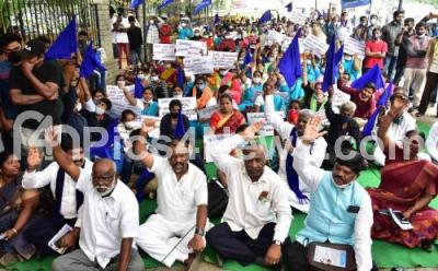 Photo Caption : Members of Dalit Sangharsha Samiti staged a protest to fulfill their various demands, in Bengaluru on Tuesday 9th November 2021