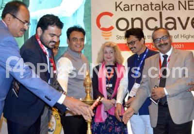 Photo Caption : Minister Dr. CN Ashwath Narayan with Tom Joseph, ED, Strategy and Development, International Skill Development Corporation (ISDC), Terasa Jacobs, ED, Learning International Skill Development Corporation (ISDC) and others during inauguration of "Karnataka NEP Conclave 2021" at a private hotel , in Bengaluru on Saturday 13th November 2021
