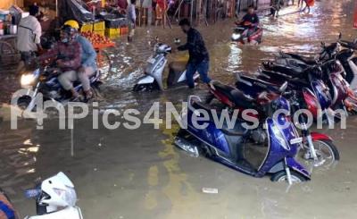 Photo Caption : Vehicles inundated in rain water as heavy rains continue to lash at Shivajinagar, in Bengaluru on Monday 15th November 2021