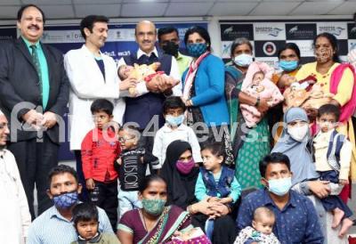 Event Description : Chief Executive Officer, Narayana Nethralaya Dr Anand Vinekar, with Dr. K Bhujang Shetty, Chairman and Managing Director, Narayana Nethralaya are seen along with the parents, whose premature babies have received this treatment through the KIDROP programme during World Prematurity Day , in Bengaluru on Wednesday 17th November 2021