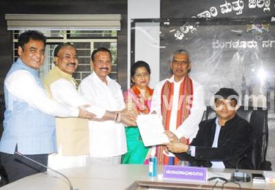 Photo Caption : BJP MLC Candidate Gopinath Reddy submitted his nomination form to DC and Election officer Manjunath, also seen are Former Union Minister DV Sadananda Gowda, Minister Ashwath Narayan and BJP Leader Arvind Limbavali, in Bengaluru on Tuesday 23rd November 2021