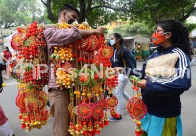 People selling toys and decoration material during the preparation of Kadlekai Parise (Groundnut festival) at Basavanagudi, in Bengaluru on Saturday 27th November 2021