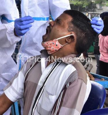 Photo Caption : Health workers collect swab samples for COVID-19 tests at KR Market, amid ongoing Coronavirus pandemic, in Bengaluru on Sunday 28th November 2021