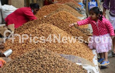 Event Description : People buying Kadalekai (groundnuts) during Kadalekai Parishe (Groundnut Festival) at Bull Temple Road, Basavanagudi, in Bengaluru on Monday 29th November 2021