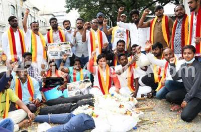 Event Description : Various organisations participated in a mock funeral at BBMP office demanding to clear pothole roads, in Bengaluru on Monday 29th November 2021